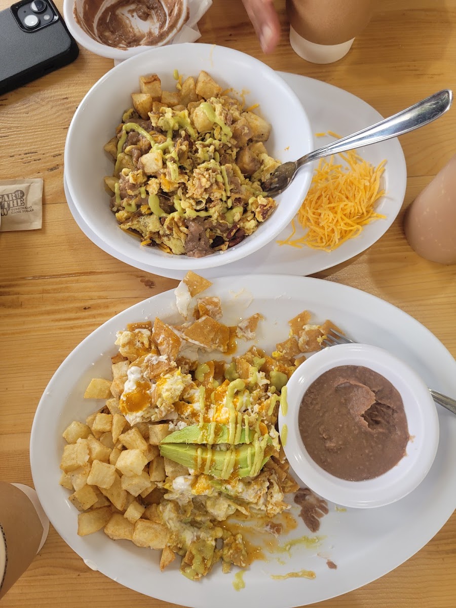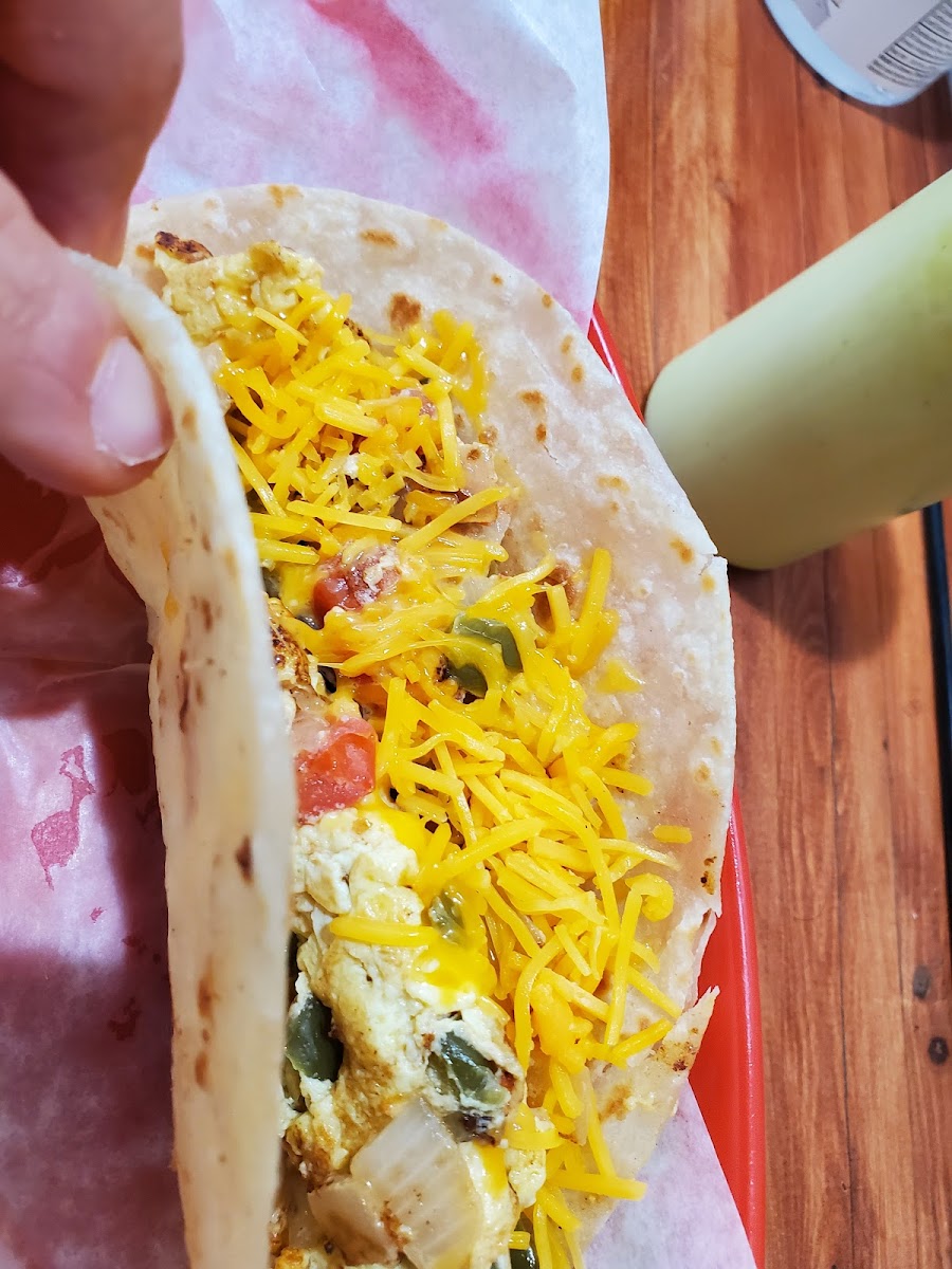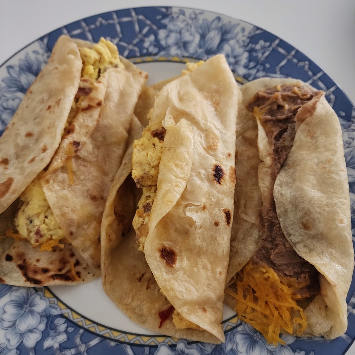 Delicious breakfast tacos. The flour tortillas alone are worth the trip! Plus, la cocinera cooking on the line is singing and has a beautiful voice