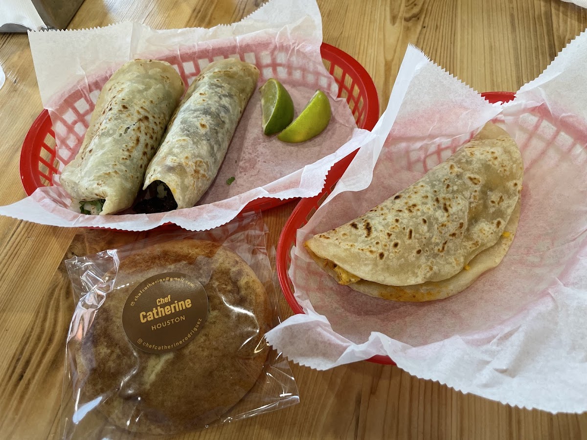 Best homemade flour tortillas. Their huevo con chorizo is the literal best not greasy and it taste amazing. These are by far the best homemade breakfast tacos in Houston. La salsa verde is too die for