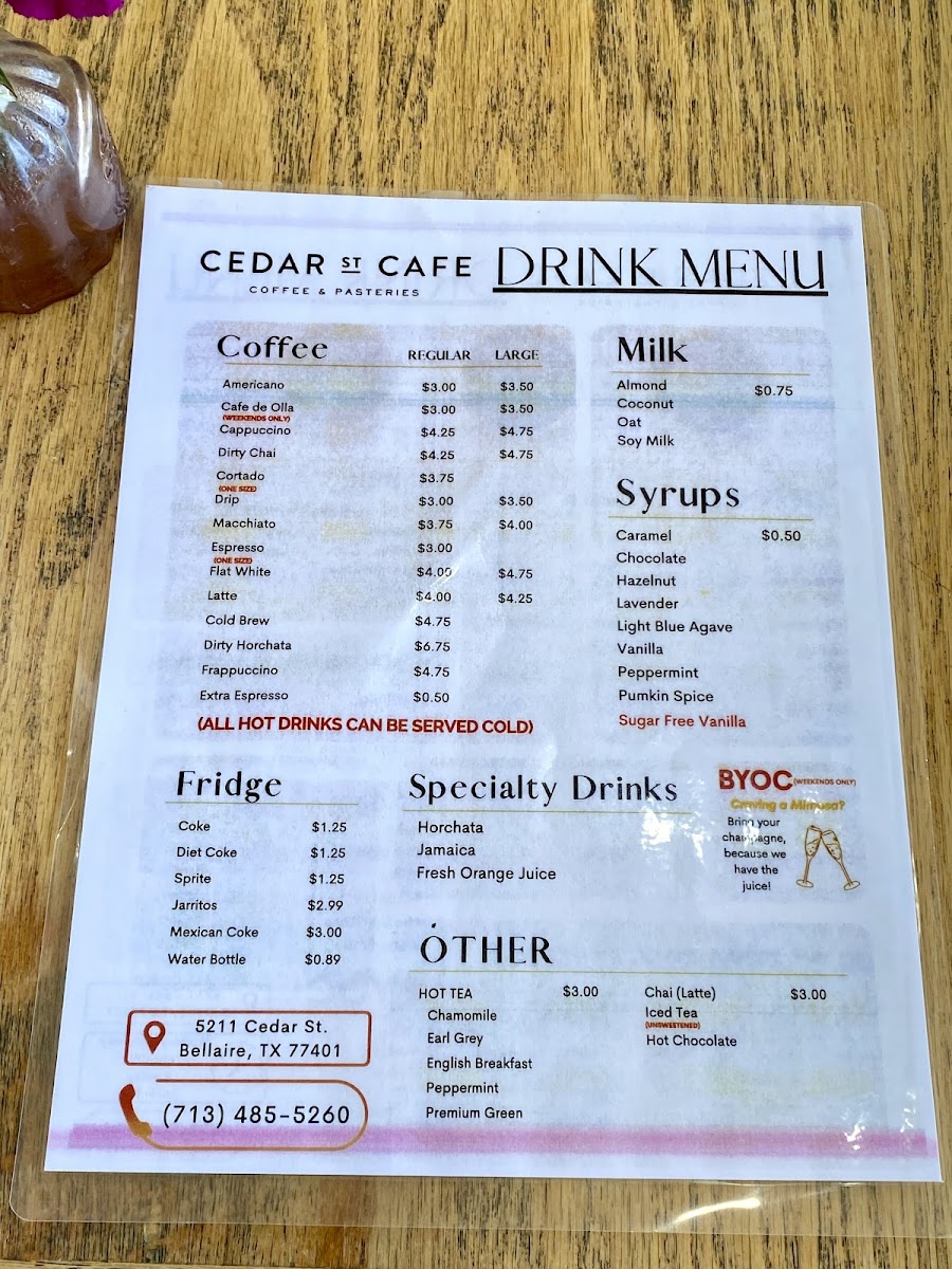 Stepping into Cedar St. Cafe feels like coming home to a quiet morning ritual in Bellaire. Tucked away on Cedar Street, this unpretentious coffee shop carries a gentle hum of conversation and the aroma of fresh coffee beans mingling with the comforting scent of warm tortillas on the griddle. It’s a spot where time slows just enough to let you savor the moment—whether you’re stopping by for a midday iced latte or settling in for a leisurely breakfast.