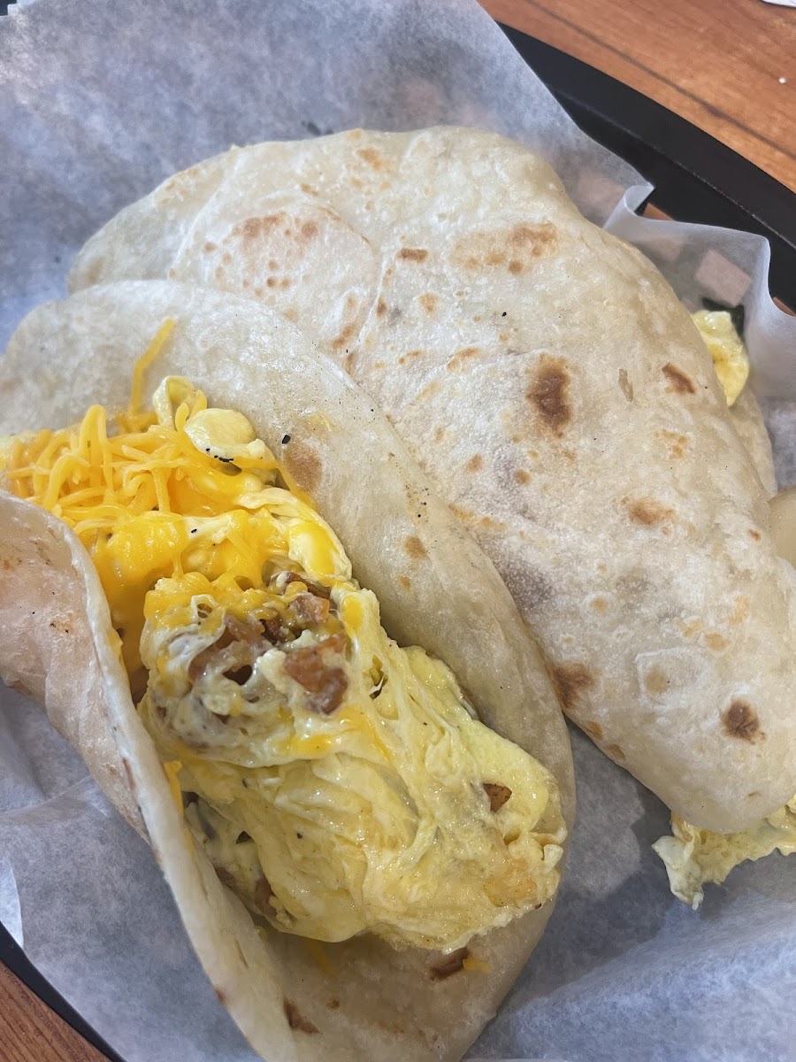 The best breakfast tacos anywhere! The flour tortillas are always fresh and buttery. Tacos are a good size and are so tasty! Table salsas are really good as well. Restaurant offers espresso drinks as well.